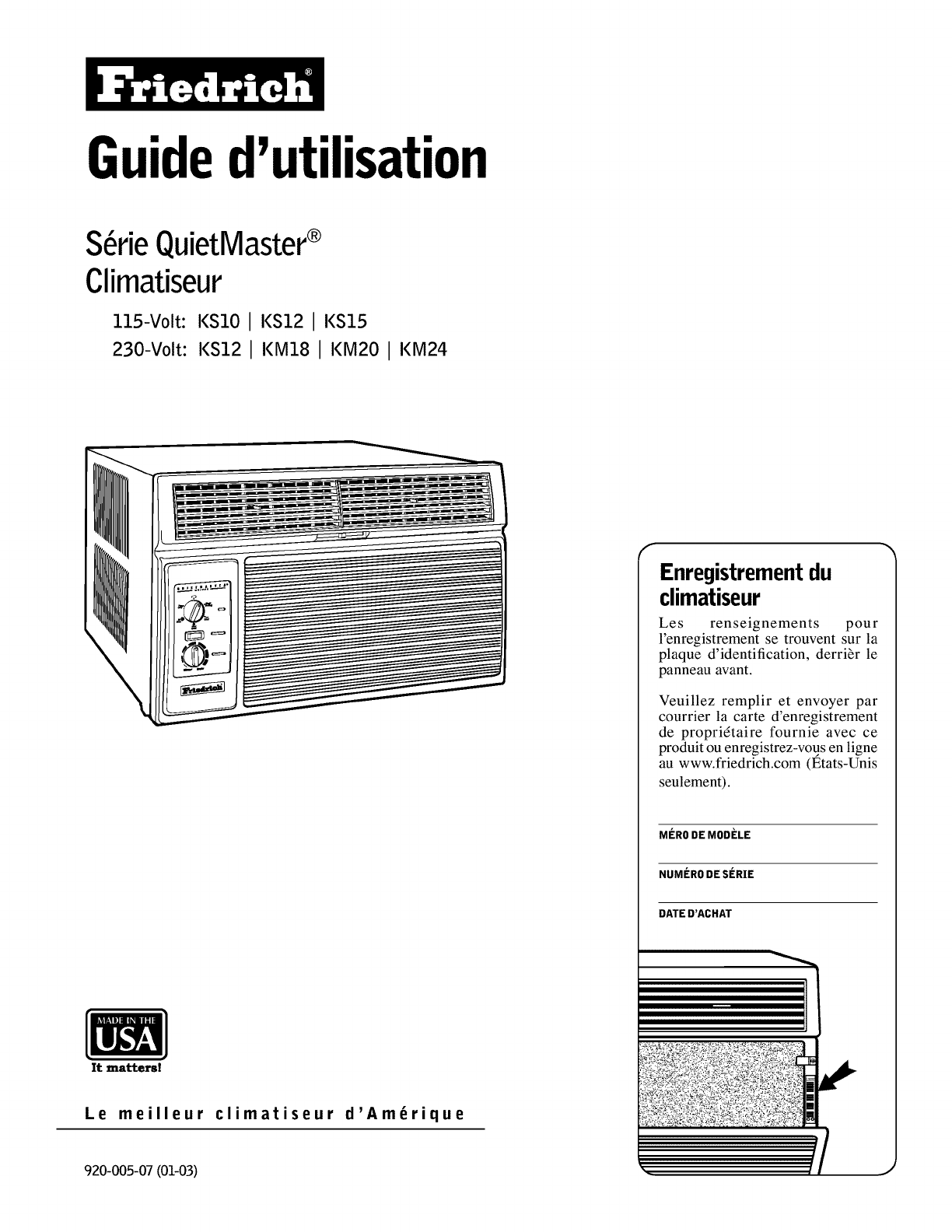 d'un defaut de main d'oeuvre ou de materiel, FRIEDRICH r_parera le produit gratuitement, pourvu qu'il soit raisonnablement facile