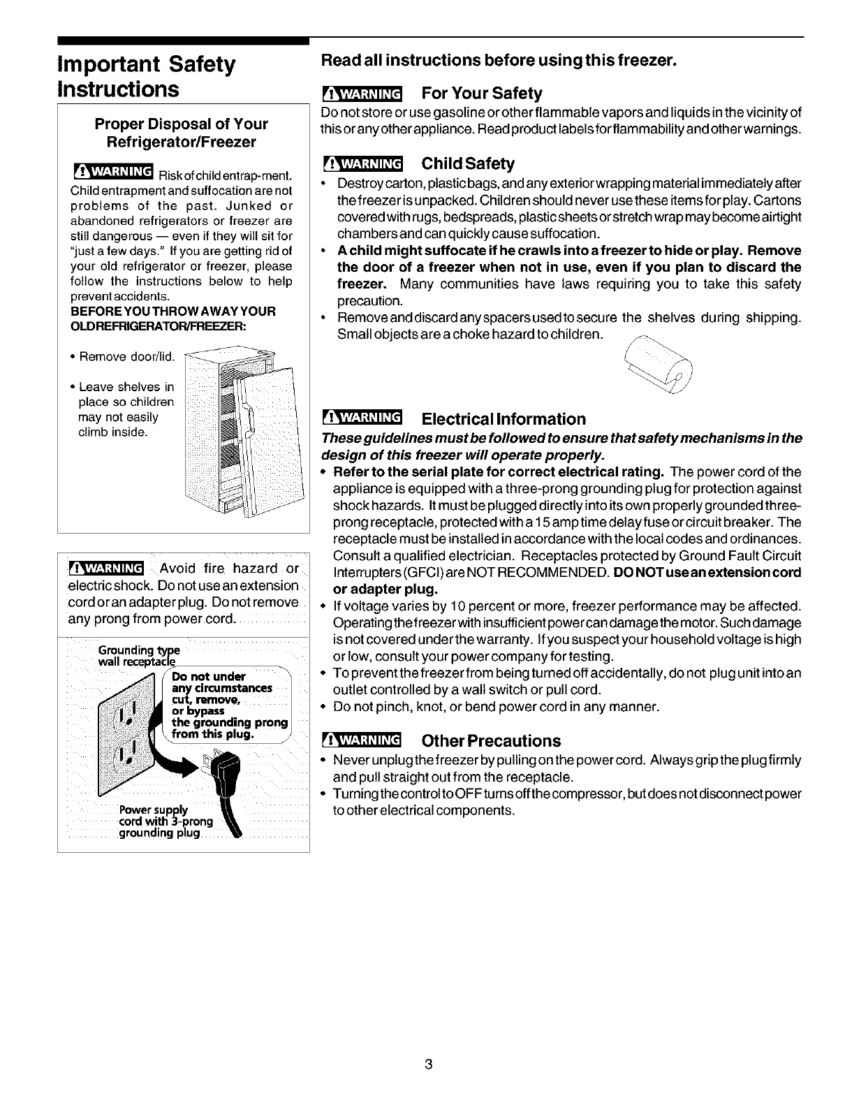 Read all instructions before using this freezer.