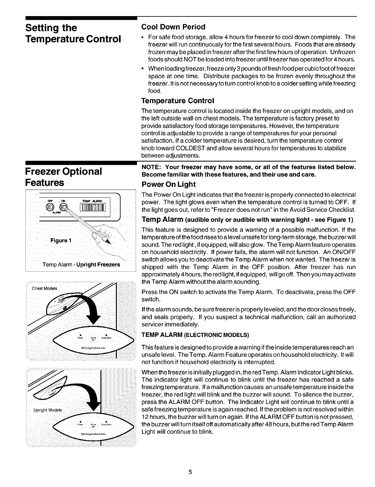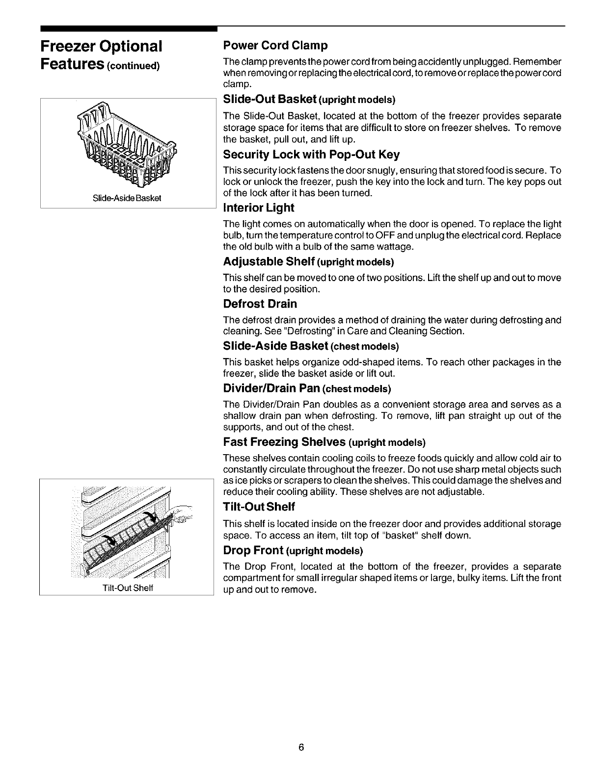 Freezer Optional Features ....... 5 - 6