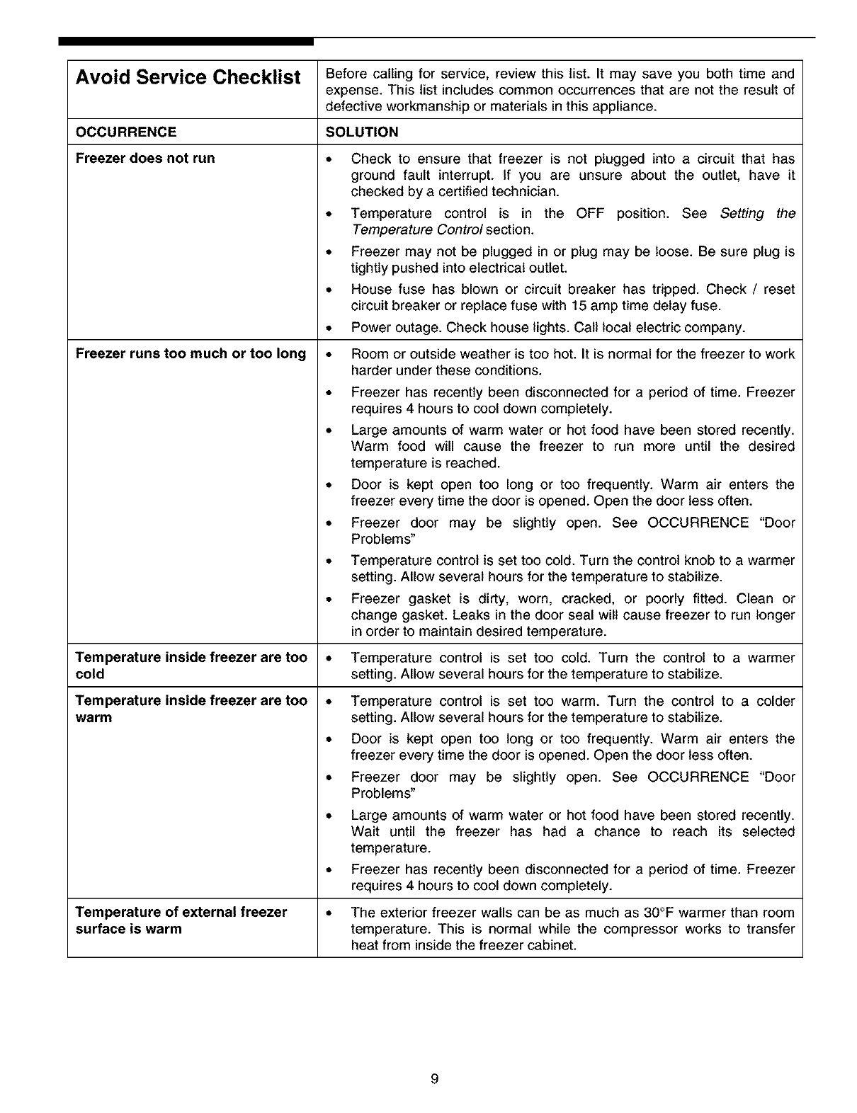 Avoid Service Checklist ......... 9 - 10