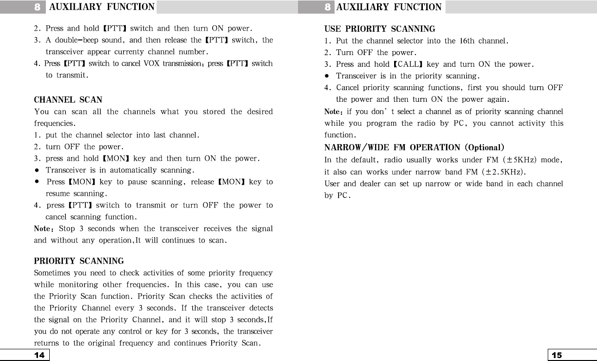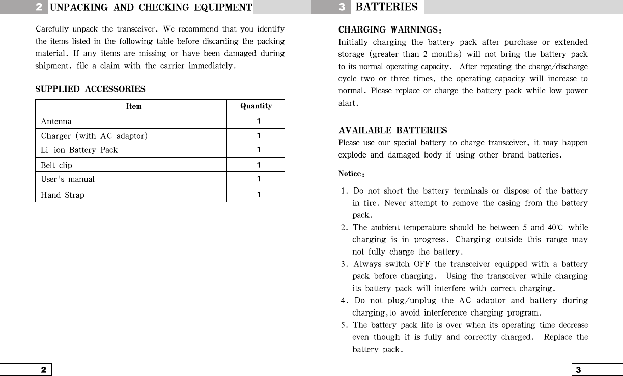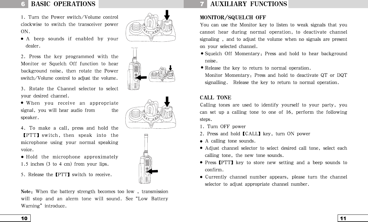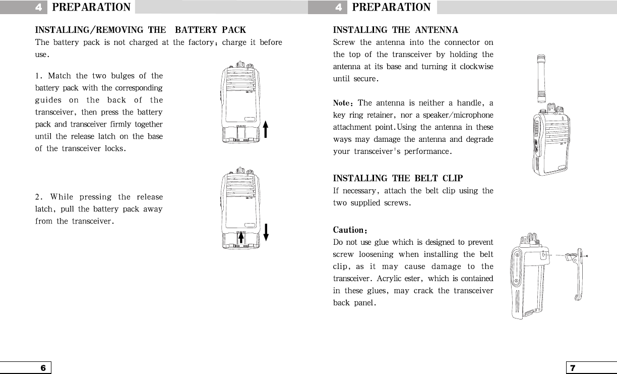 DO NOT operate the radio without a proper antenna attached, as this may damaged the radio and may also cause you