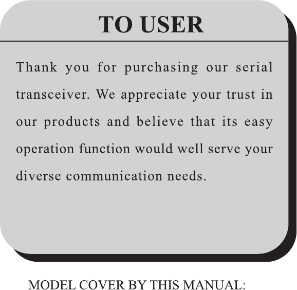 DO NOT operate the radio without a proper antenna attached, as this may damaged the radio and may also cause you