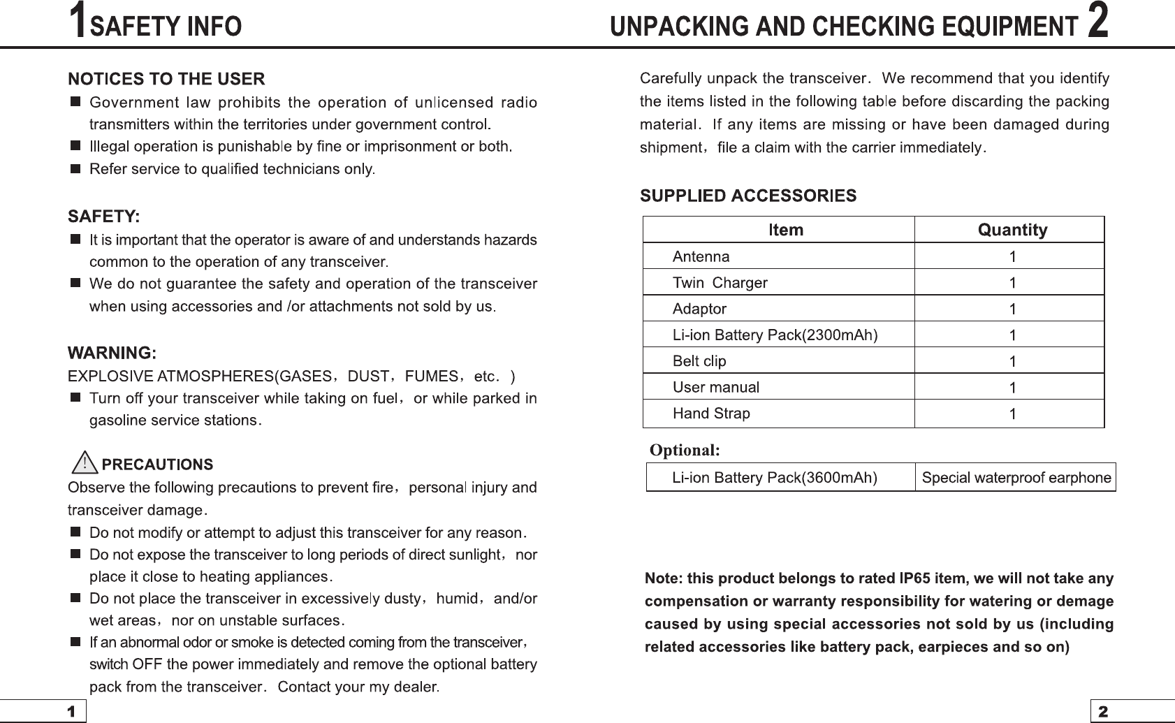 FUJIAN NEW CENTURY COMMUNICATIONS IP-609 Handheld Two Way Radio User Manual I