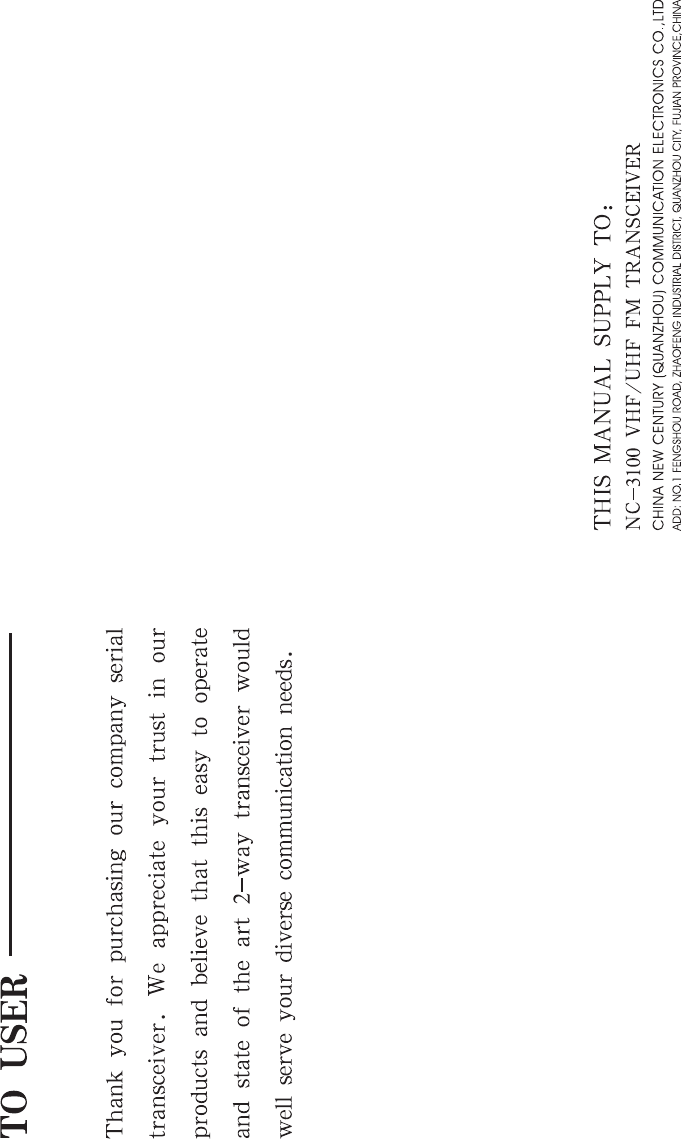 FUJIAN NEW CENTURY COMMUNICATIONS NC-3100 HANDHELD TWO WAY RADIO User Manual