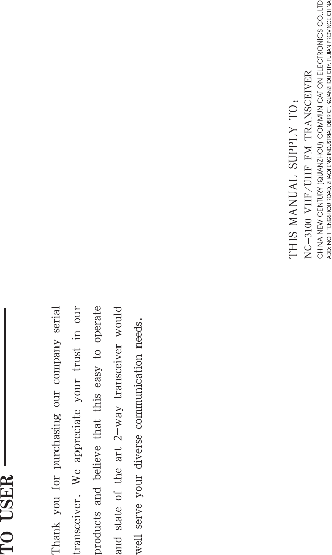 FUJIAN NEW CENTURY COMMUNICATIONS NC-3100 HANDHELD TWO WAY RADIO User Manual