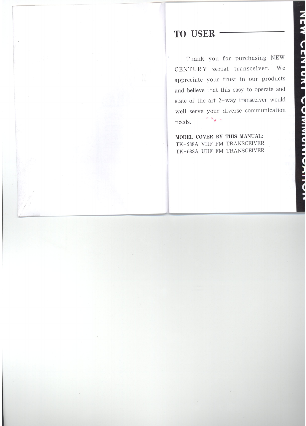 FUJIAN NEW CENTURY COMMUNICATIONS TK-688A TWO WAY RADIO User Manual User s Manual Add Information