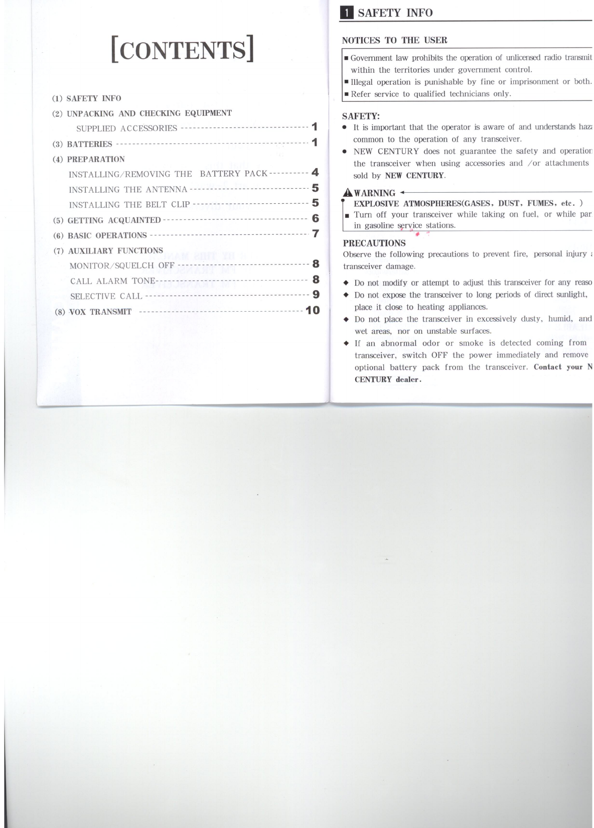 QUANZHOU CITY NEW CENTURY COMMUNICATION ELECTRONICS CO.,LTD. TWO WAY RADIO User s Manual Add Information