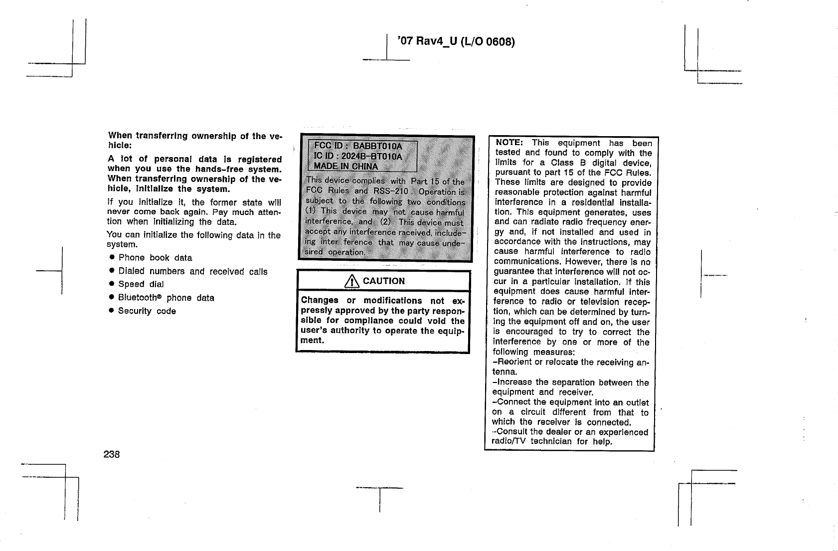 FUJITSU TEN BT010A Vehicle Audio System with Bluetooth Transceiver User Manual