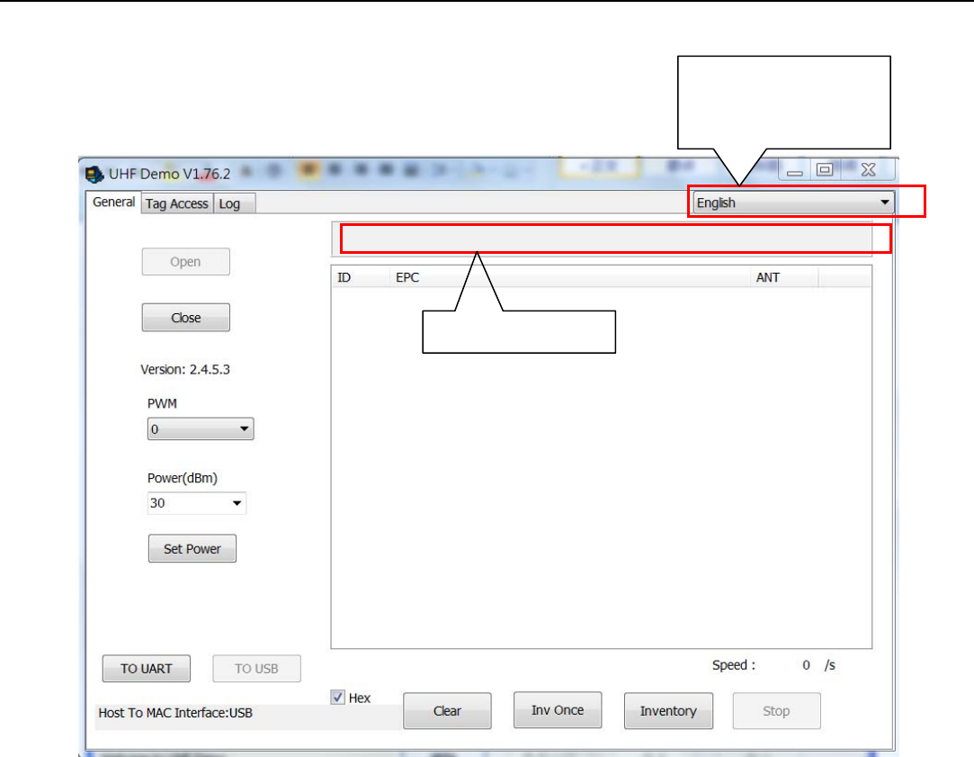 Inc Once: Click this button, the device will search tags automatically stop after 2s card