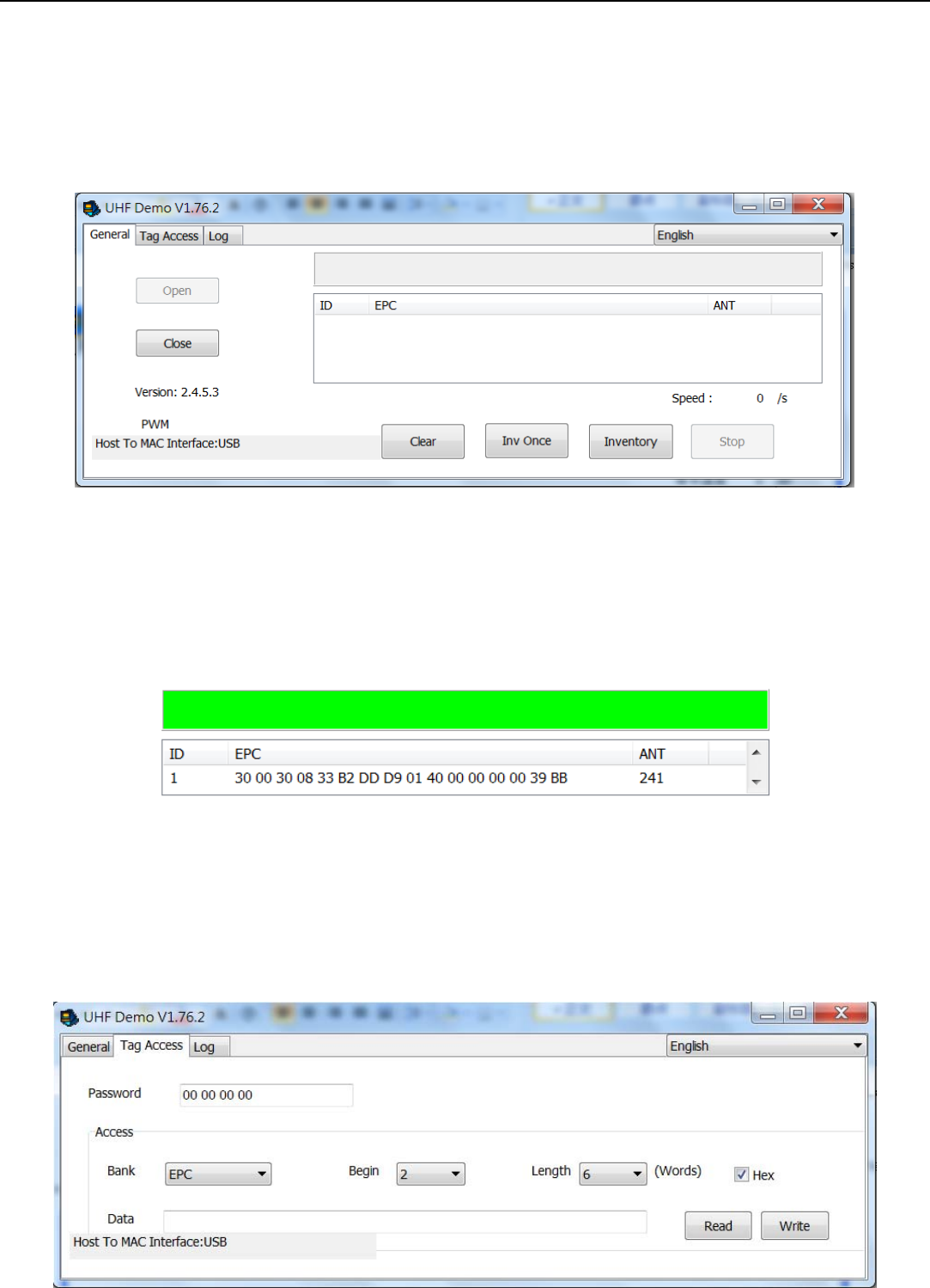 antenna sensor area; click “Inventory” / “Inv Once” button to card; When the card is found to label, “found