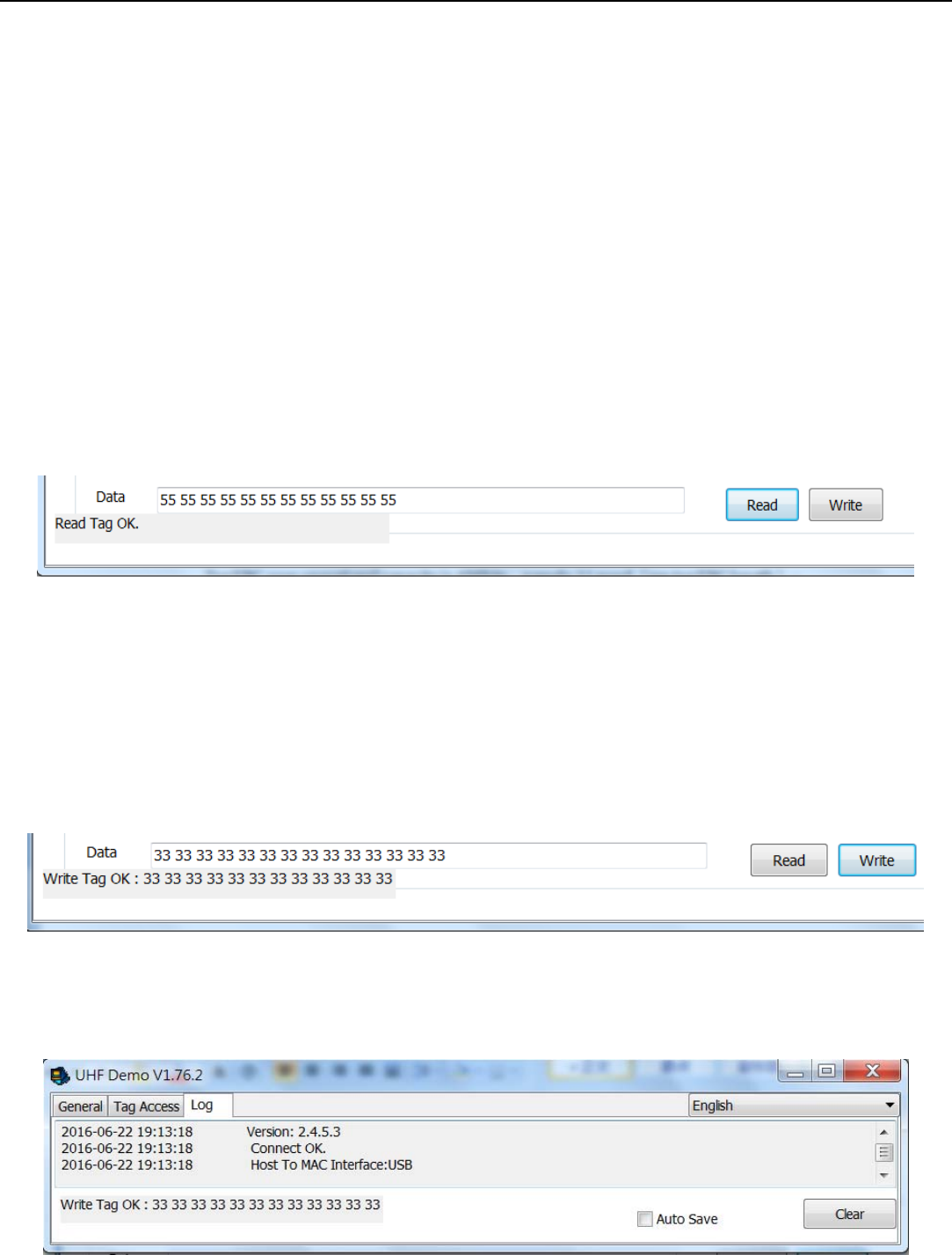lower left corner tip “Write OK” and displays the information write (when need to write information on tag for