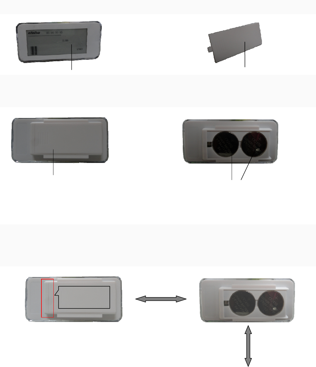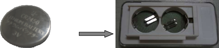 direction of the gap of the rear cover )→take out the battery→put two new CR2450 batteries (side with words upward)