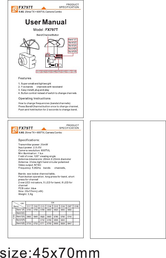 FXT Technology 003 5.8G TX Camera Combo User Manual