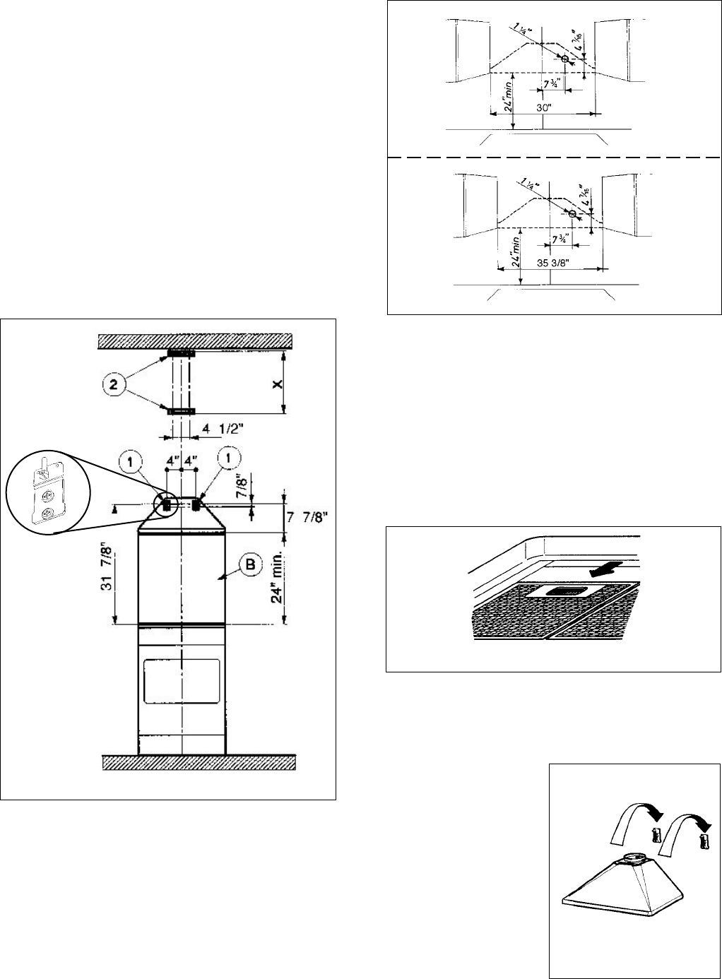 9. La cheminée doit être fixée à la hotte. La section CHEMINÉE