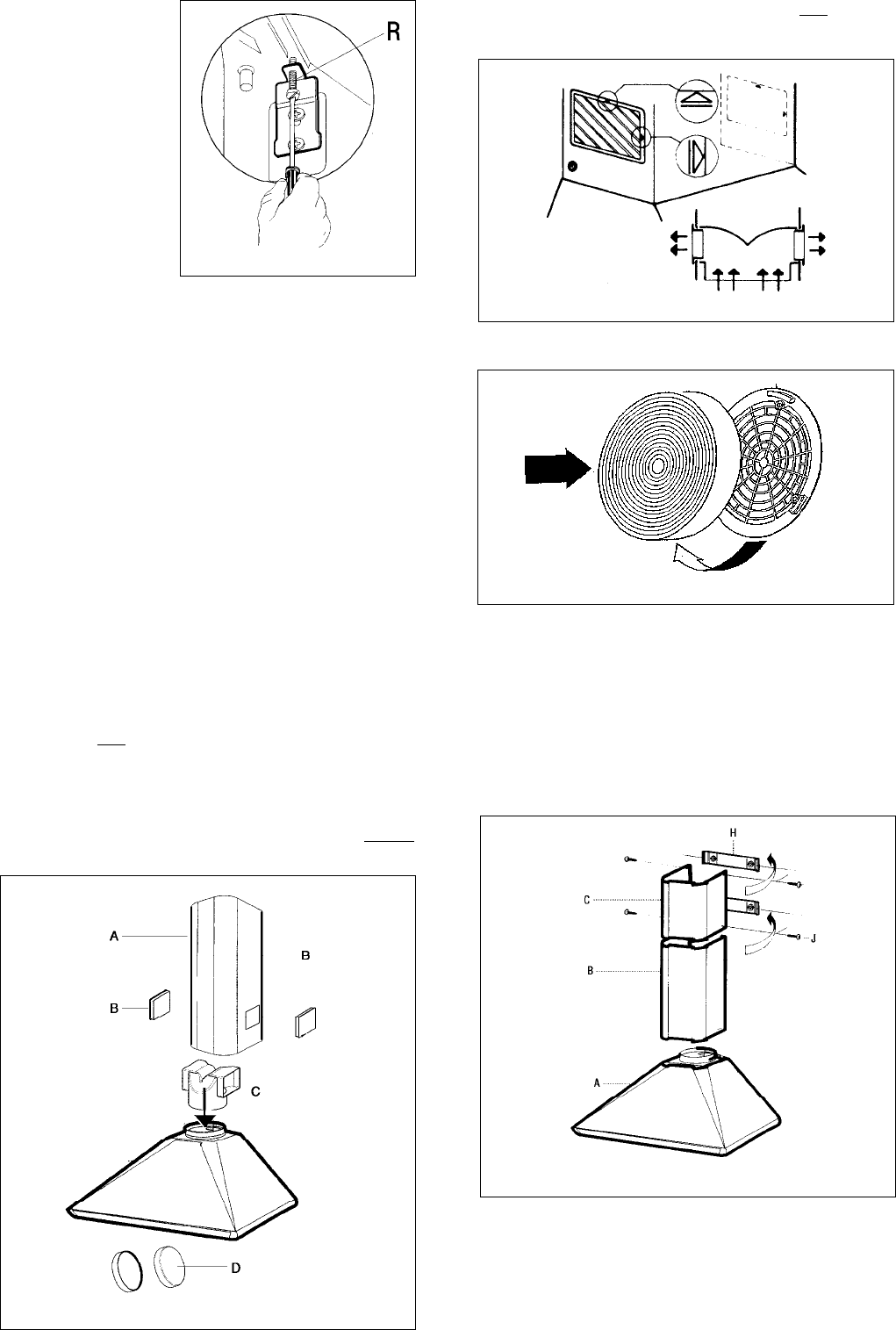 et deux FILTRES AU CHARBON (D). Le DÉFLECTEUR SANS