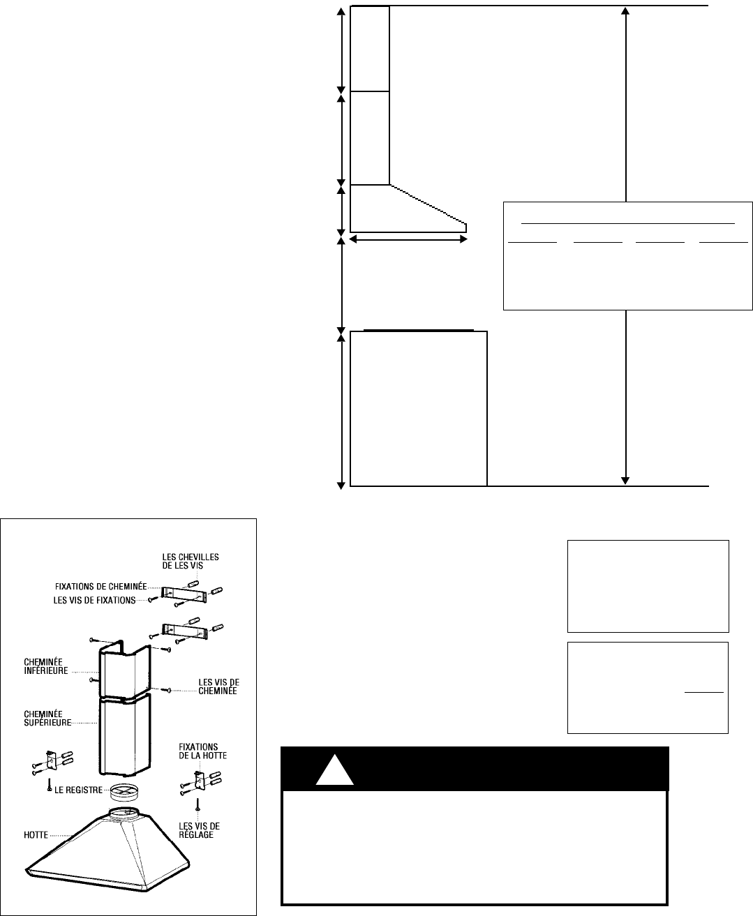 de cuisson. Consultez la fiche technique avant de découper les armoires. L'installation de cette hotte doit être conforme aux