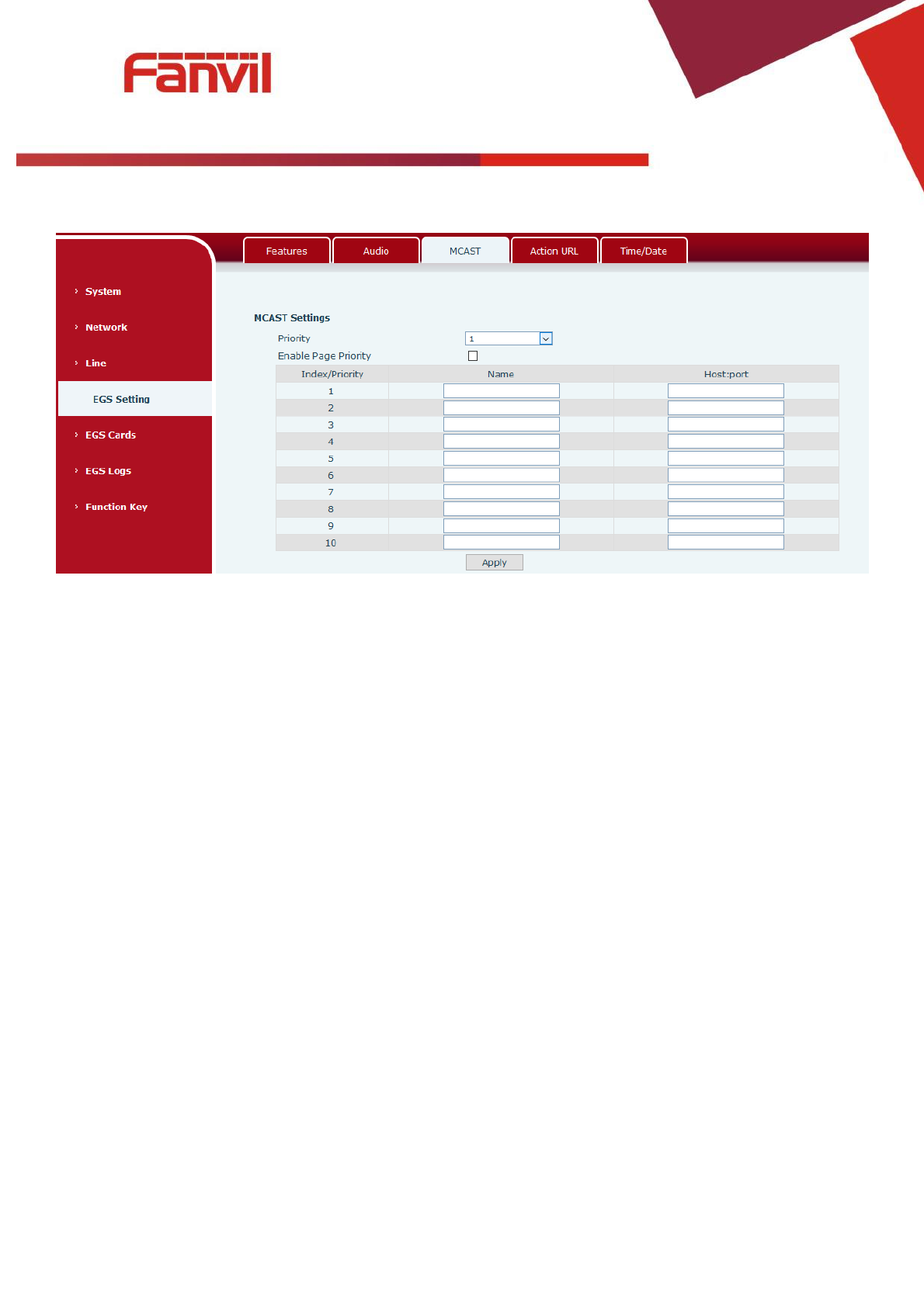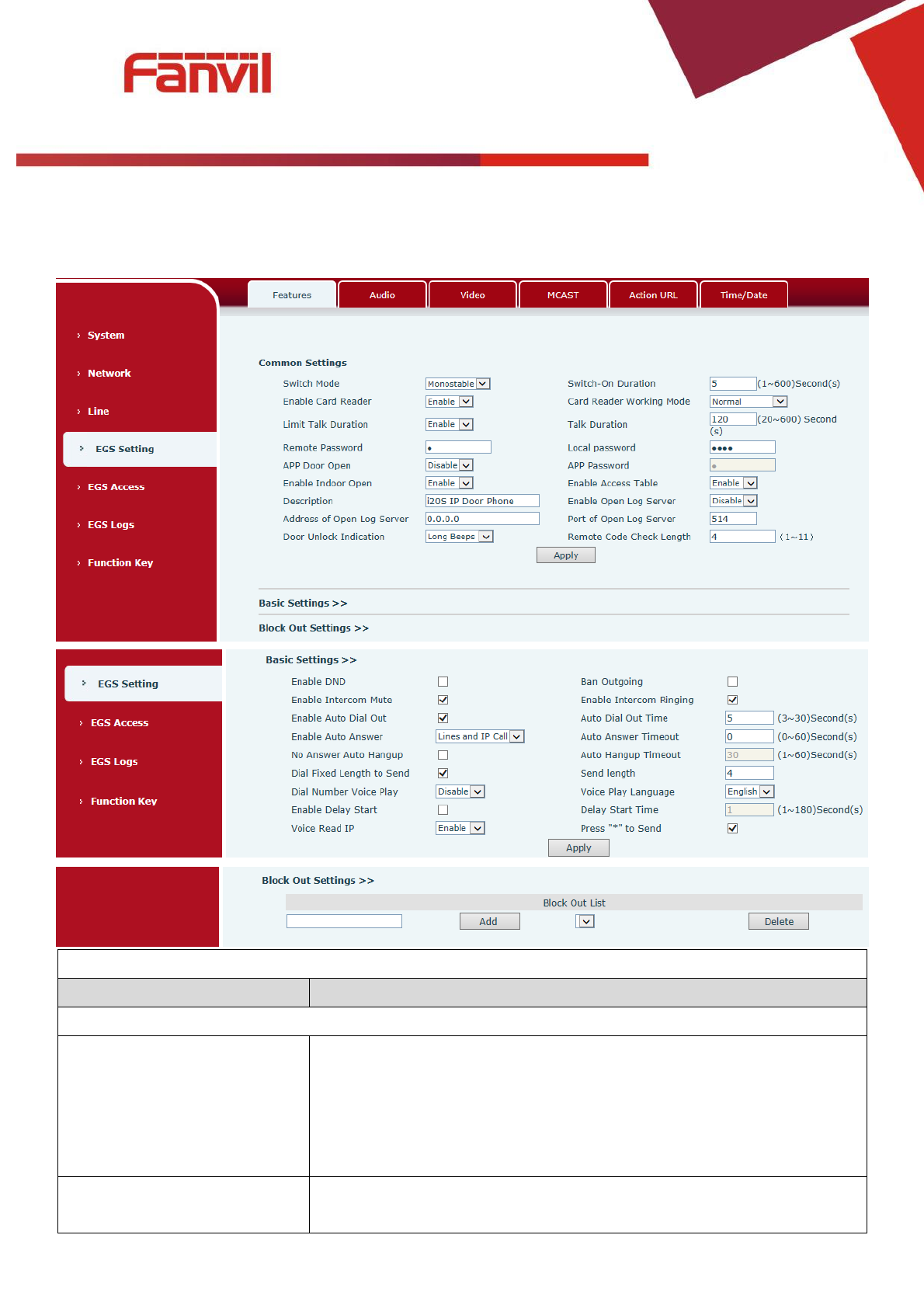 In web page < EGS Setting →Features →Card Reader Working Mode > option, select <Card