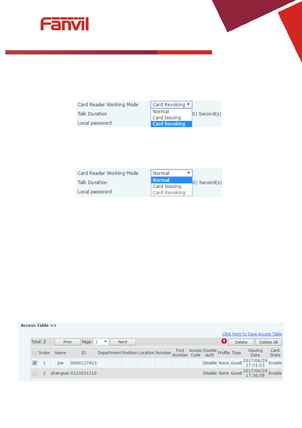 In web page < EGS Setting →Features →Card Reader Working Mode > option, select <Normal>.