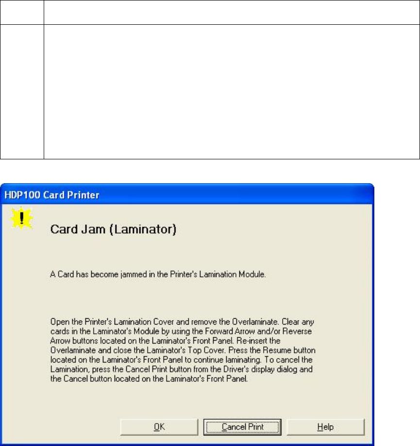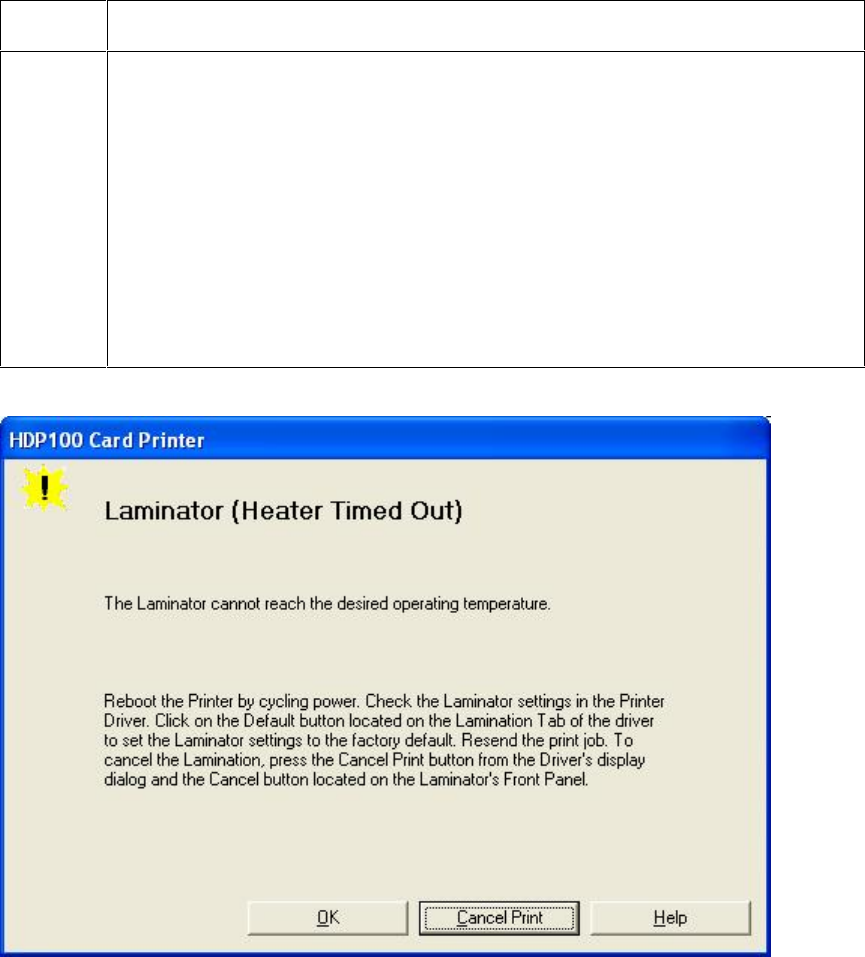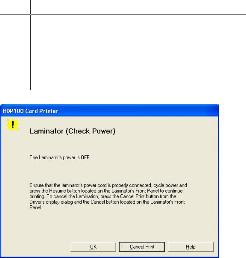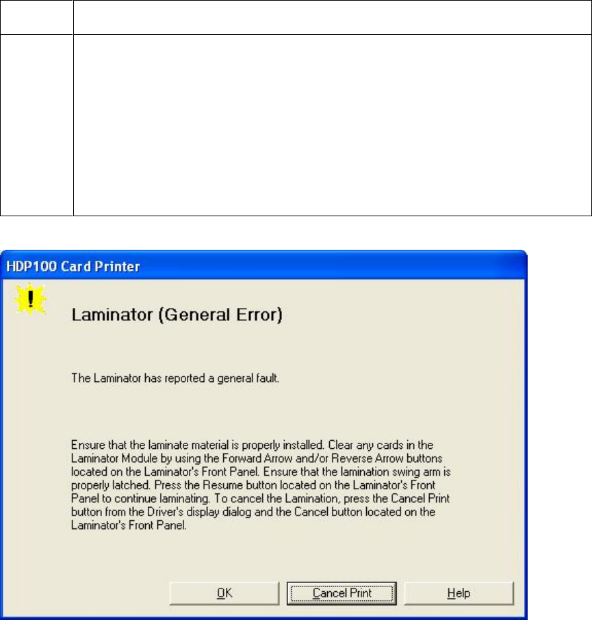 Printer Error State: The Laminator has reported a general fault.