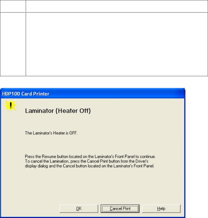 Driver Monitor Error Display: Laminator (Heater Off)