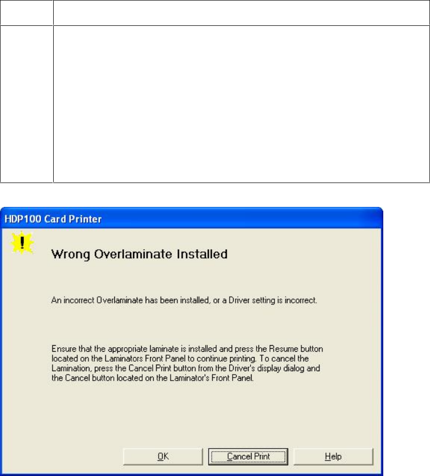 Printer Error State: An incorrect Overlaminate has been installed, or a