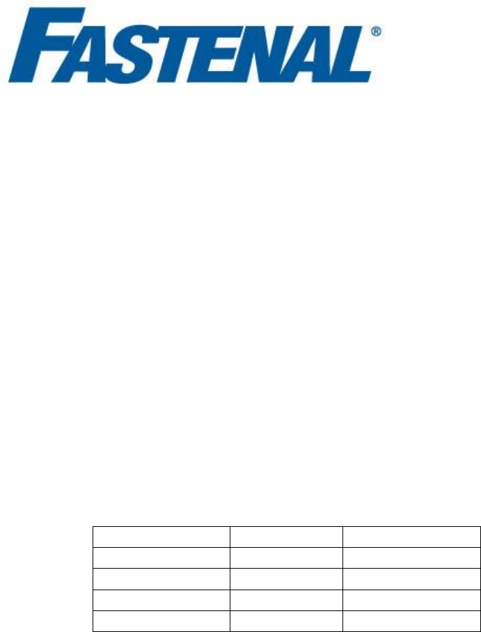 equipment. Please contact Fastenal at the toll-free number listed above if you need assistance