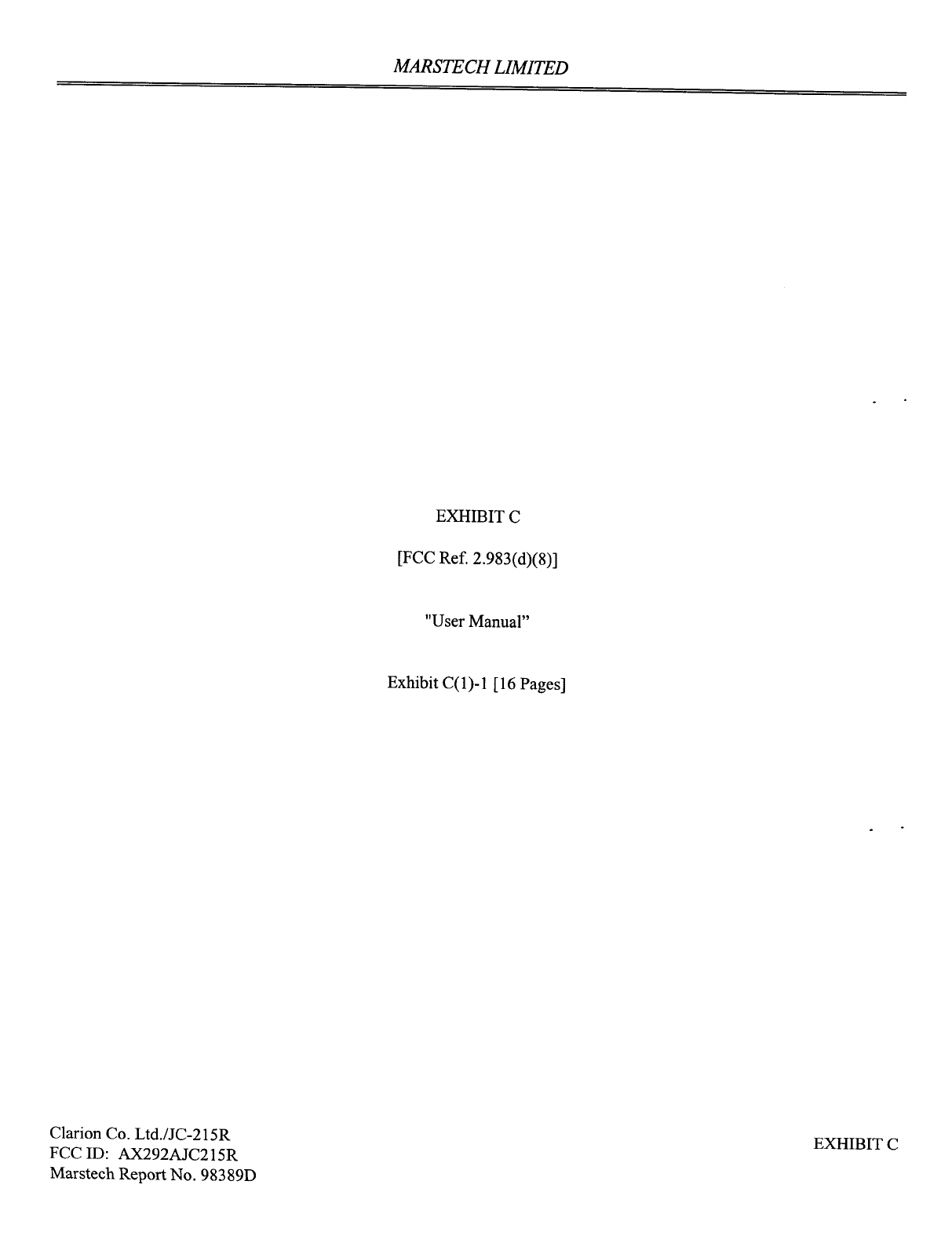 Faurecia Clarion Electronics 92AJC215H CB RADIO User Manual