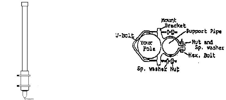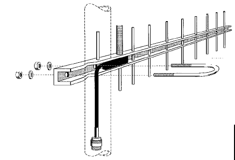 Yagi antennas are mounted using the included U-Bolts, Nuts, and Lock Washers as shown in the