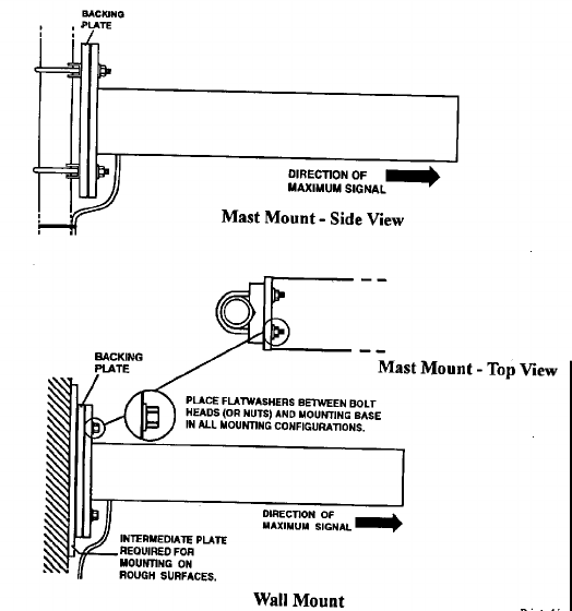 should be used for mast mounting. Note that in either case, the metal backing plate should be placed