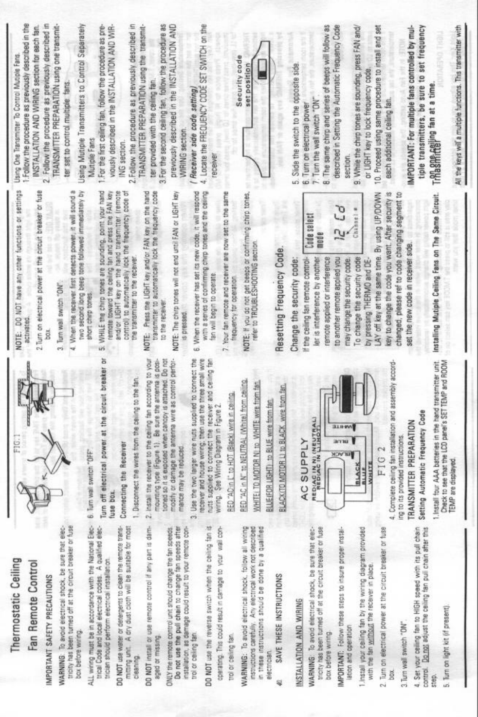 Fego Precision Co BC9006 Lighting/Fan Remote User Manual MLT9909P15010