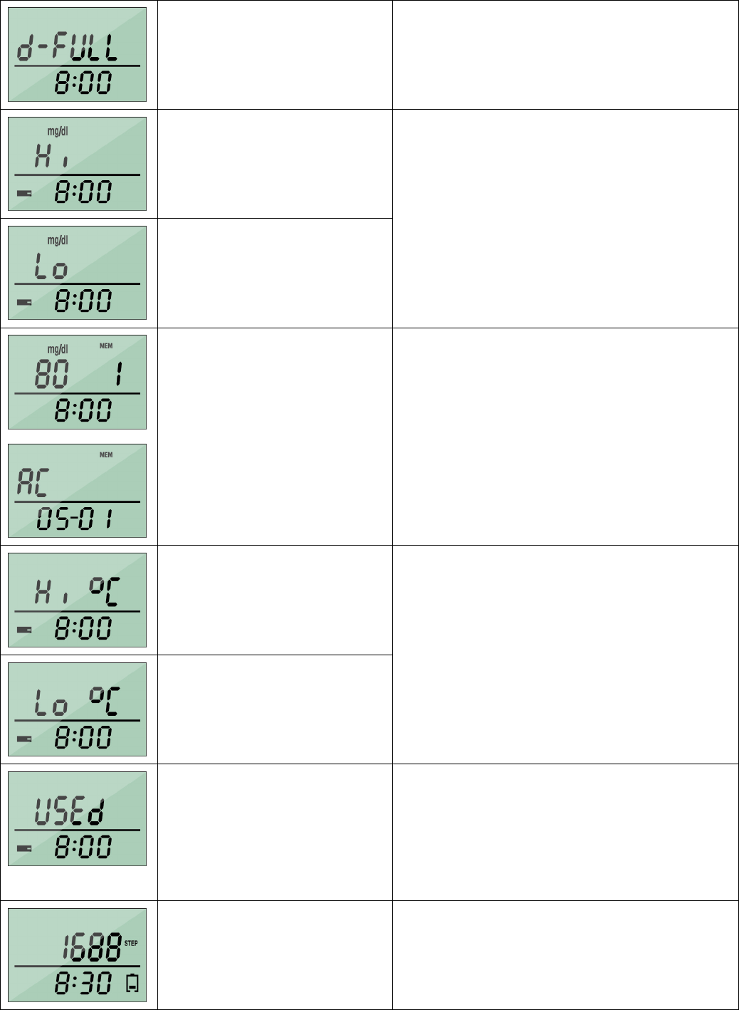 Display Content Blood Glucose / Step Counts / Distance / Calories / Time /