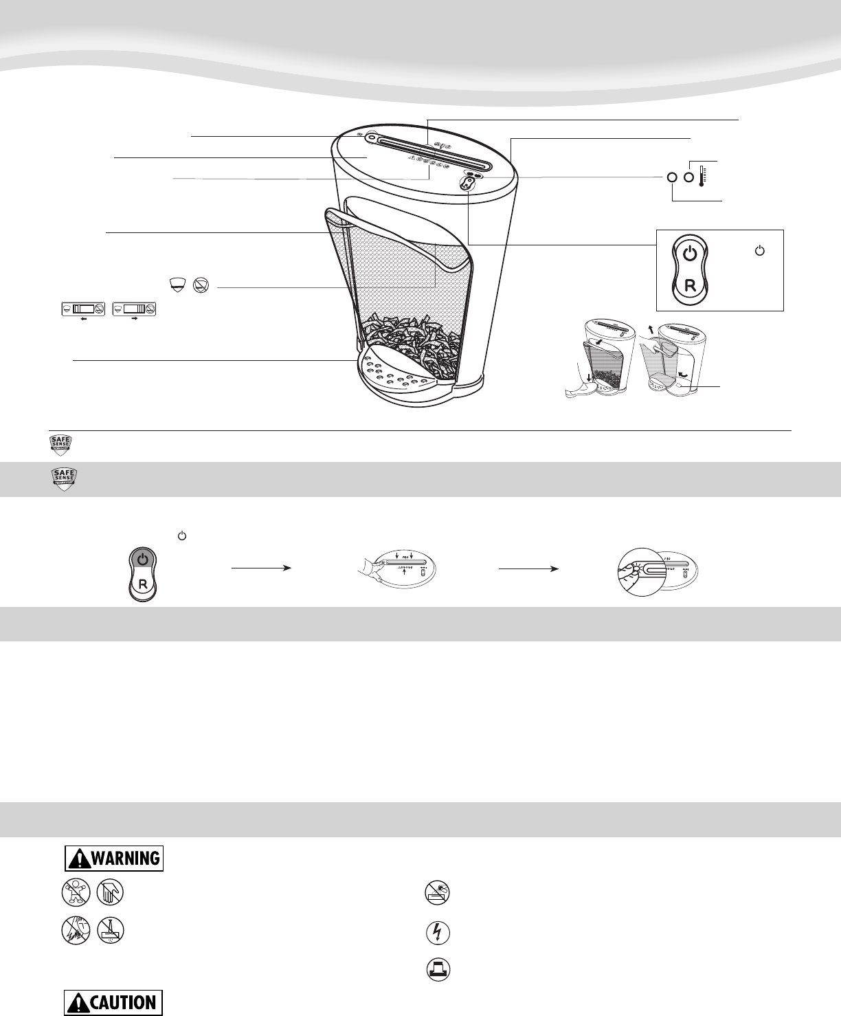 • Avoid touching exposed blades under Confetti-Cut shredder head. • The socket-outlet shall be installed near the equipment and shall be