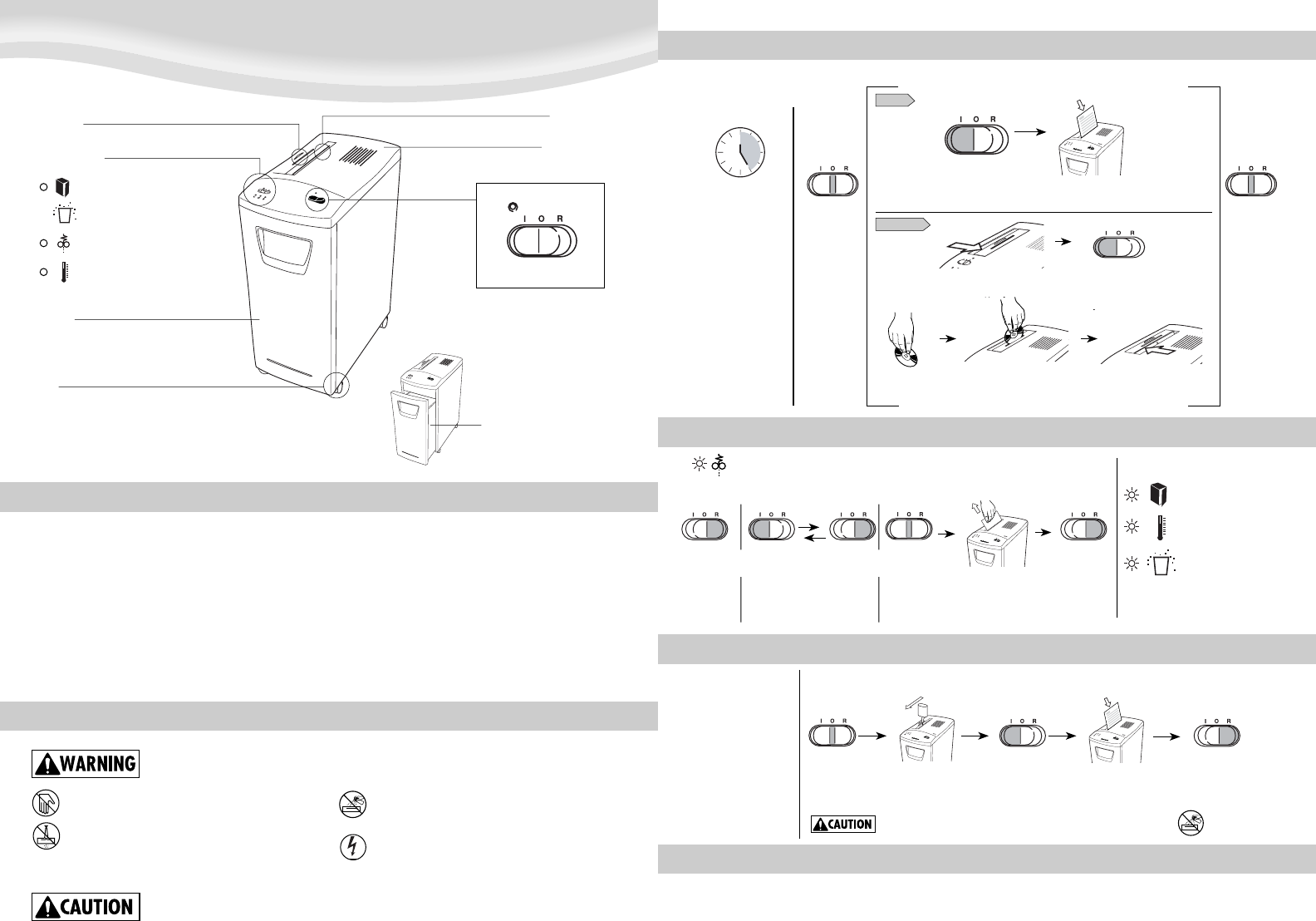 • Avoid touching exposed blades under Confetti-Cut shredder head. • Use only designated entry for cards/CDs. Keep finger away from