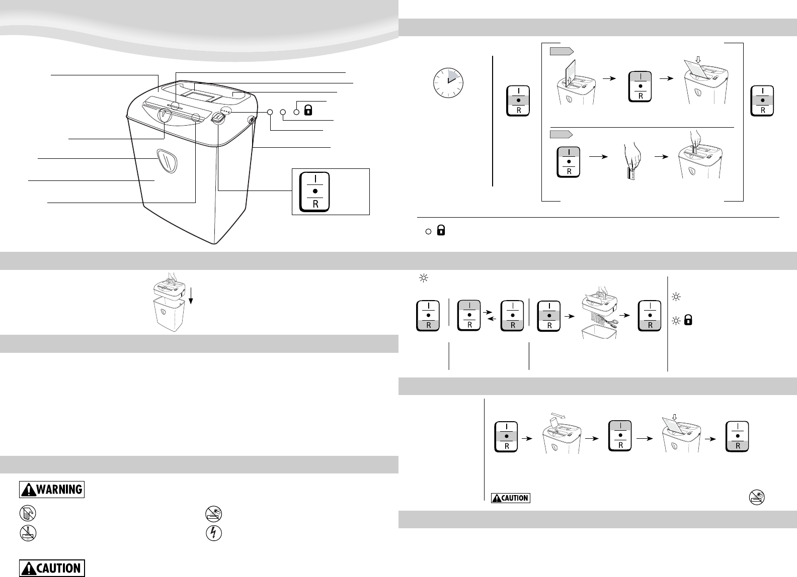 • Do not use if damaged or defective. Do not open shredder