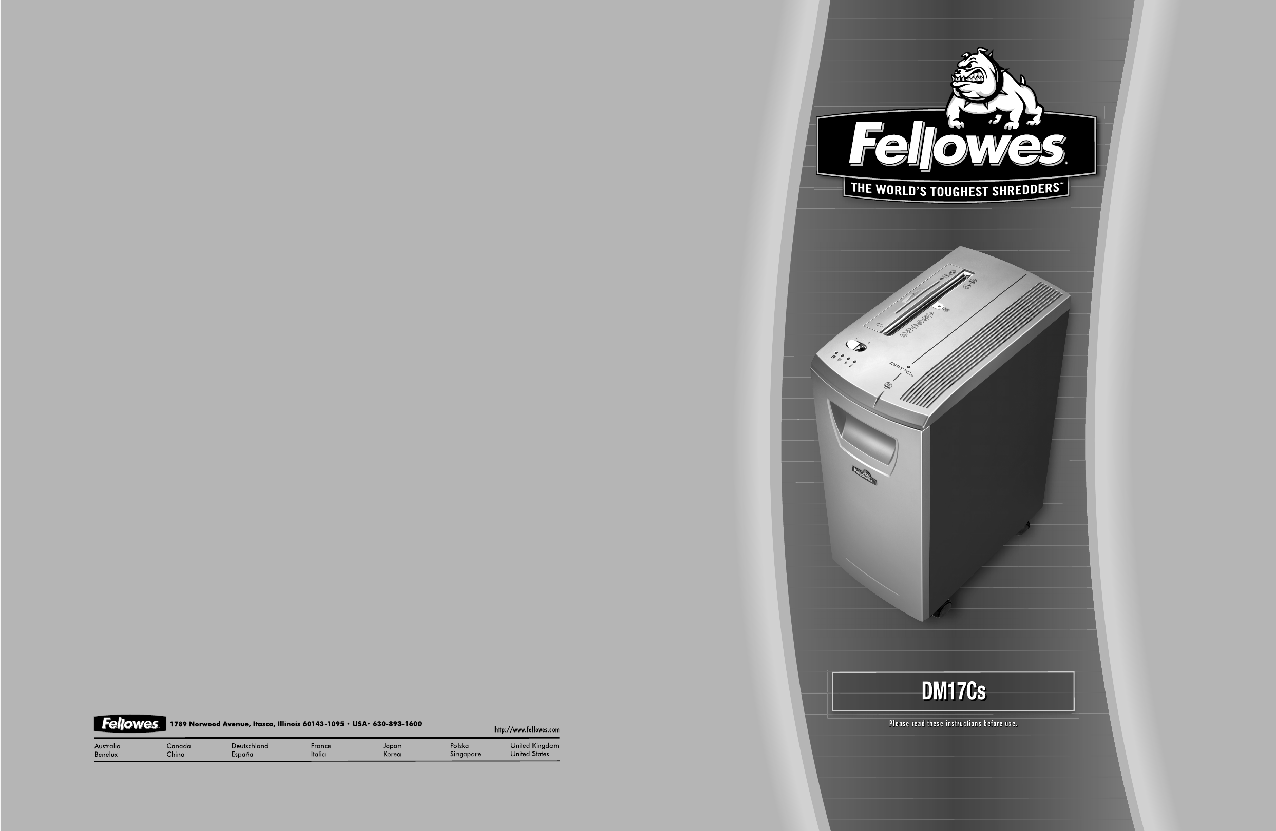Fellowes Shredders Dm17Cs Users Manual DM17C.3L.401945NA.041607