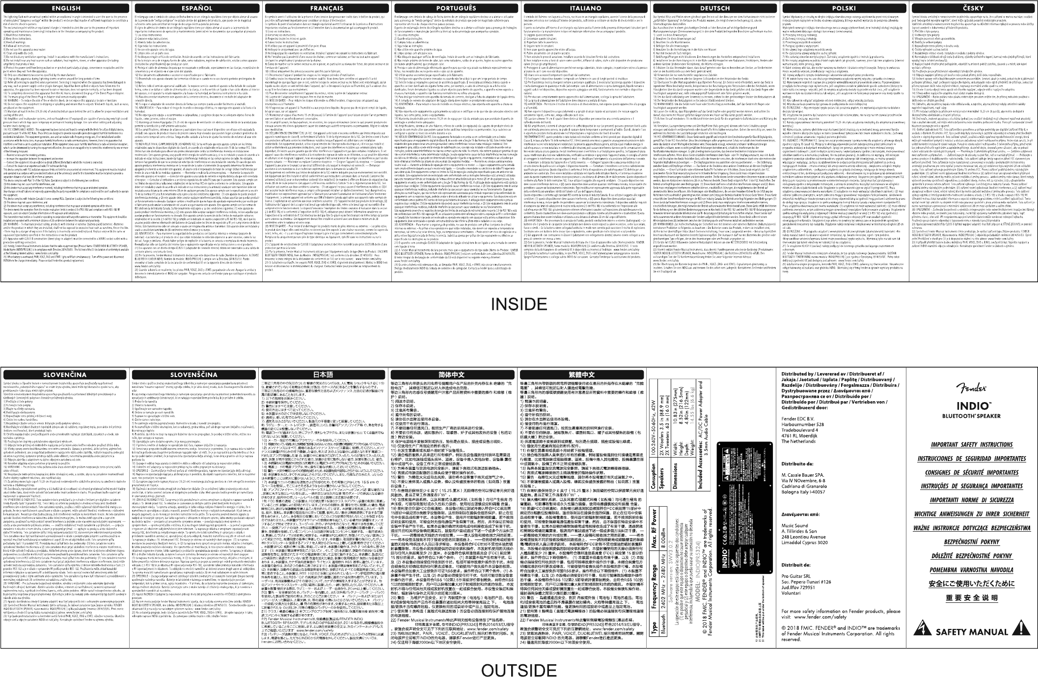 Fender Musical Instruments FBTPR5324 FENDER INDIO BLUETOOTH SPEAKER User Manual part 2