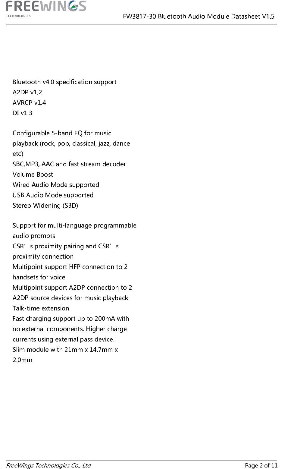 The FreeWings module is a complete Bluetooth implementation with analog audio output. An F-style