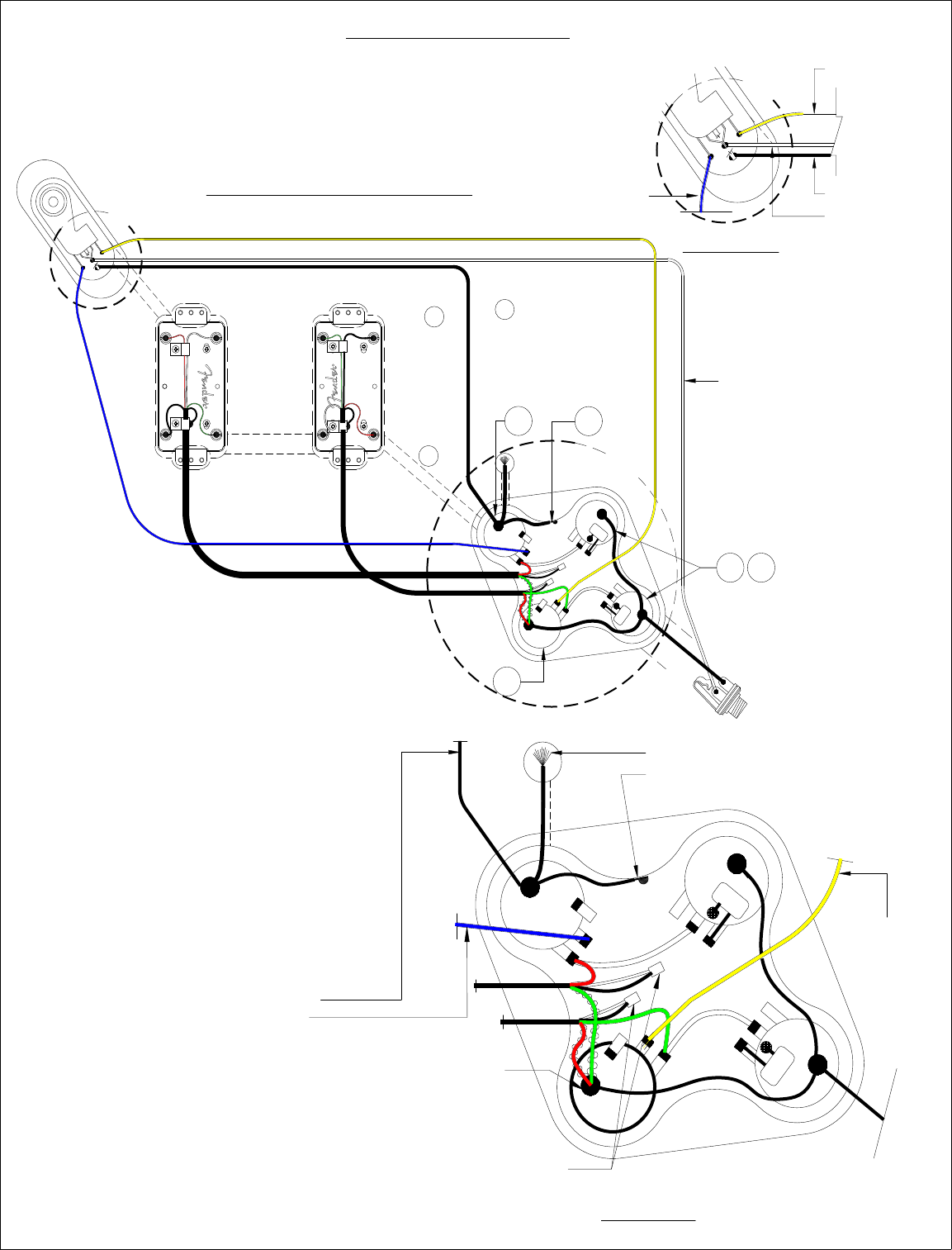 FROM NECK PICKUP. SOLDER ALL TO BACK OF BRIDGE