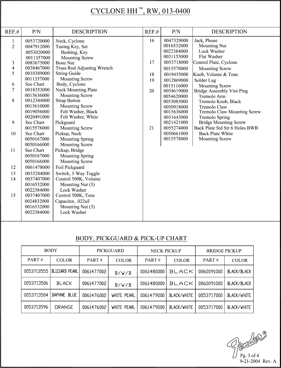Fender SD 013 0400 Cyclone HH 0400A SISD