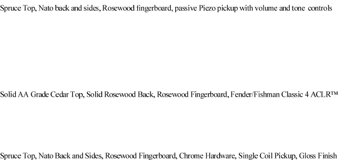 Six models built to exacting specifications of their respective vintages, including: body contours and radii, neck shape,
