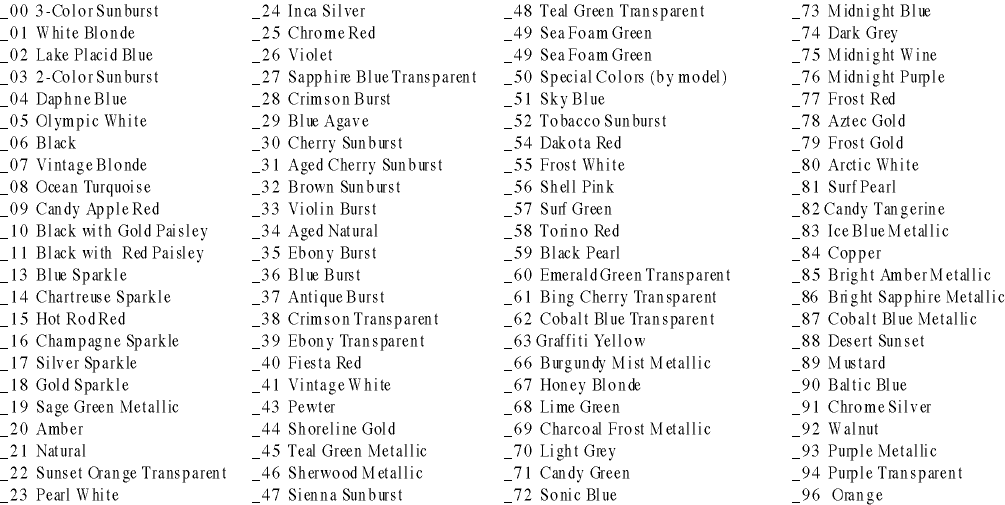 800  3-Color  Sunburst 805 Olympic White 806  Black