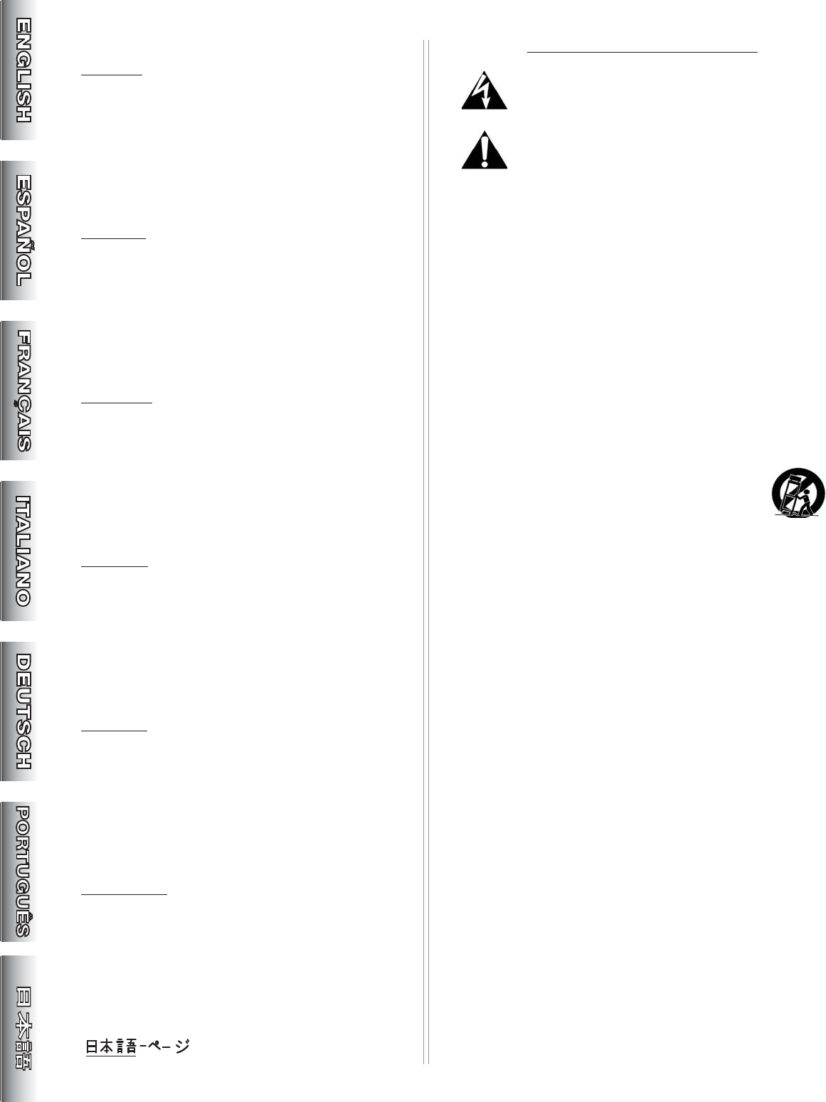 I. 電源コード ̶ お 使 い の ア ン プ の リ ア パ ネ ル に 記 載 さ れ て い る 電 圧 と 周 波 数