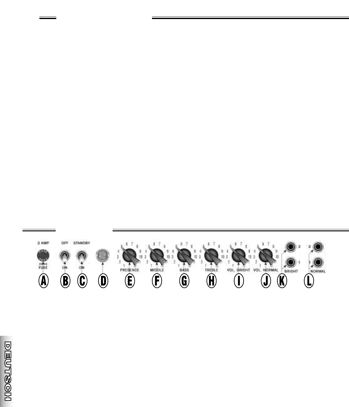 D. POWER-ANZEIGE - Leuchtet, nachdem der Amp