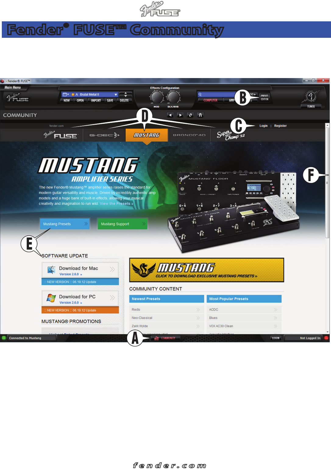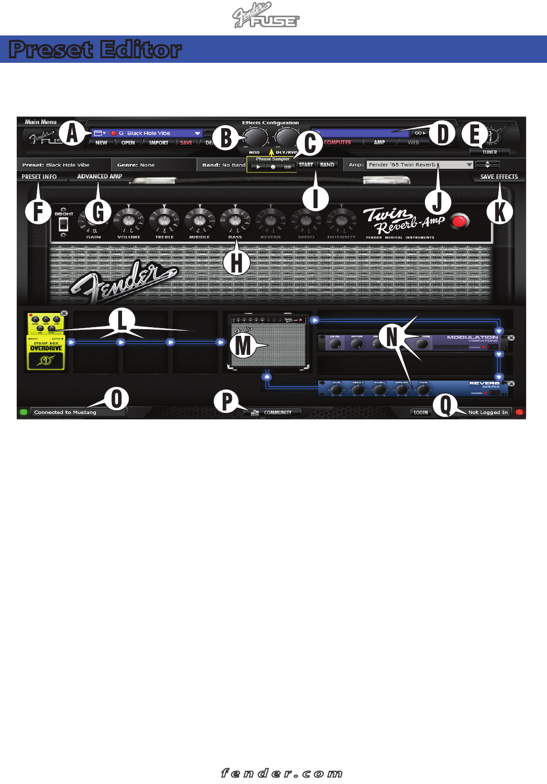 Fender®, G-DEC® 3, Mustang™ and Fender® FUSE™ are trademarks of FMIC.