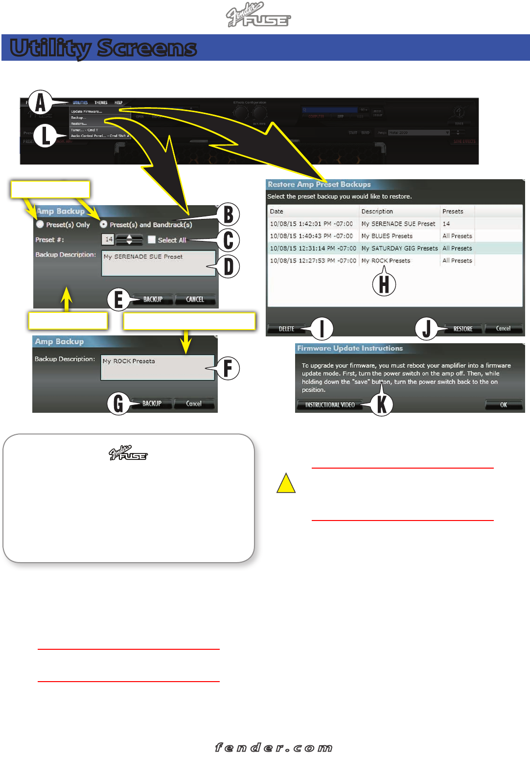 Fender FUSE screen, then click on "UTILITIES," then click on