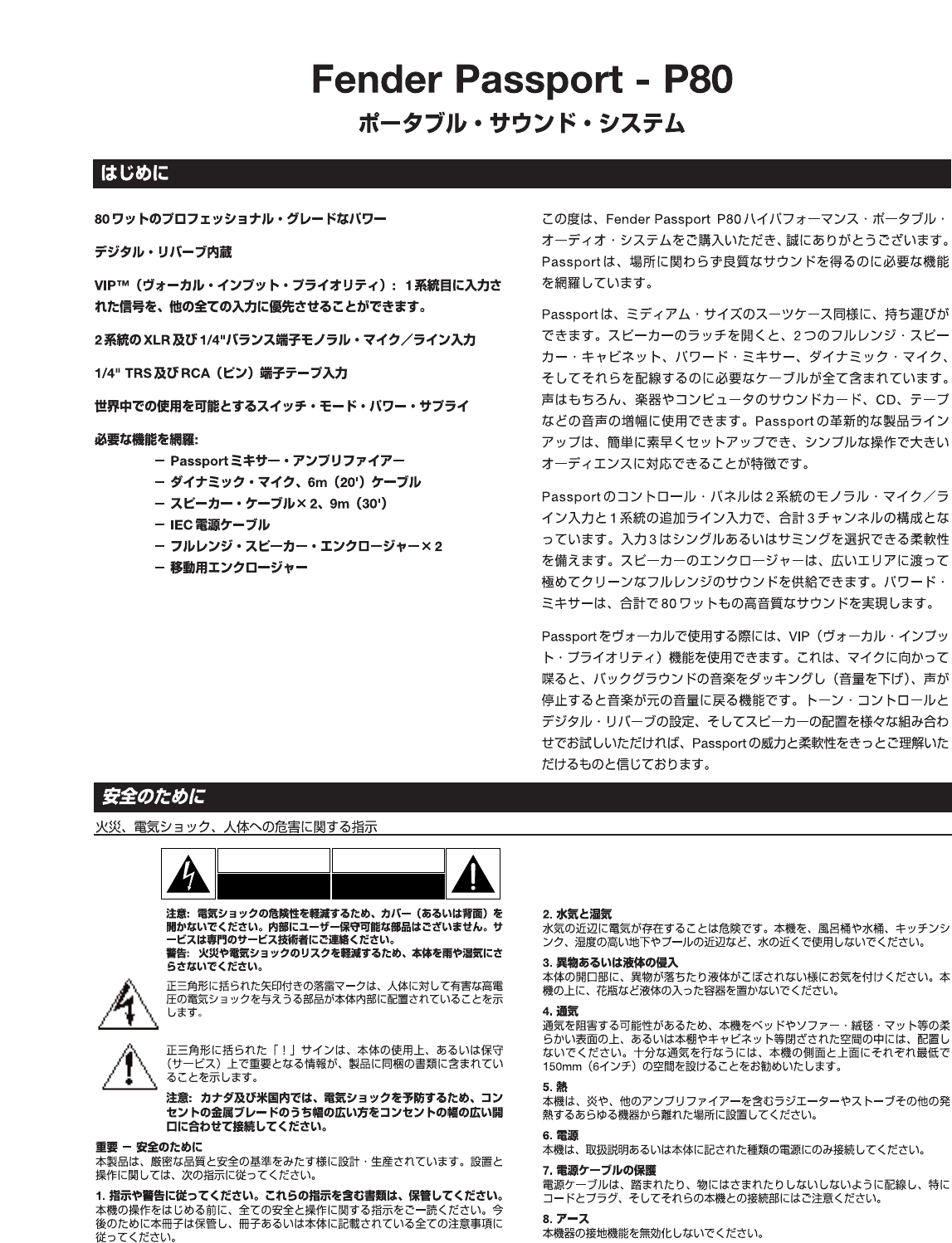 User Manual: Fender Passport_P80_manual Fender® Audio Owner's Manuals (Current) – Fender
