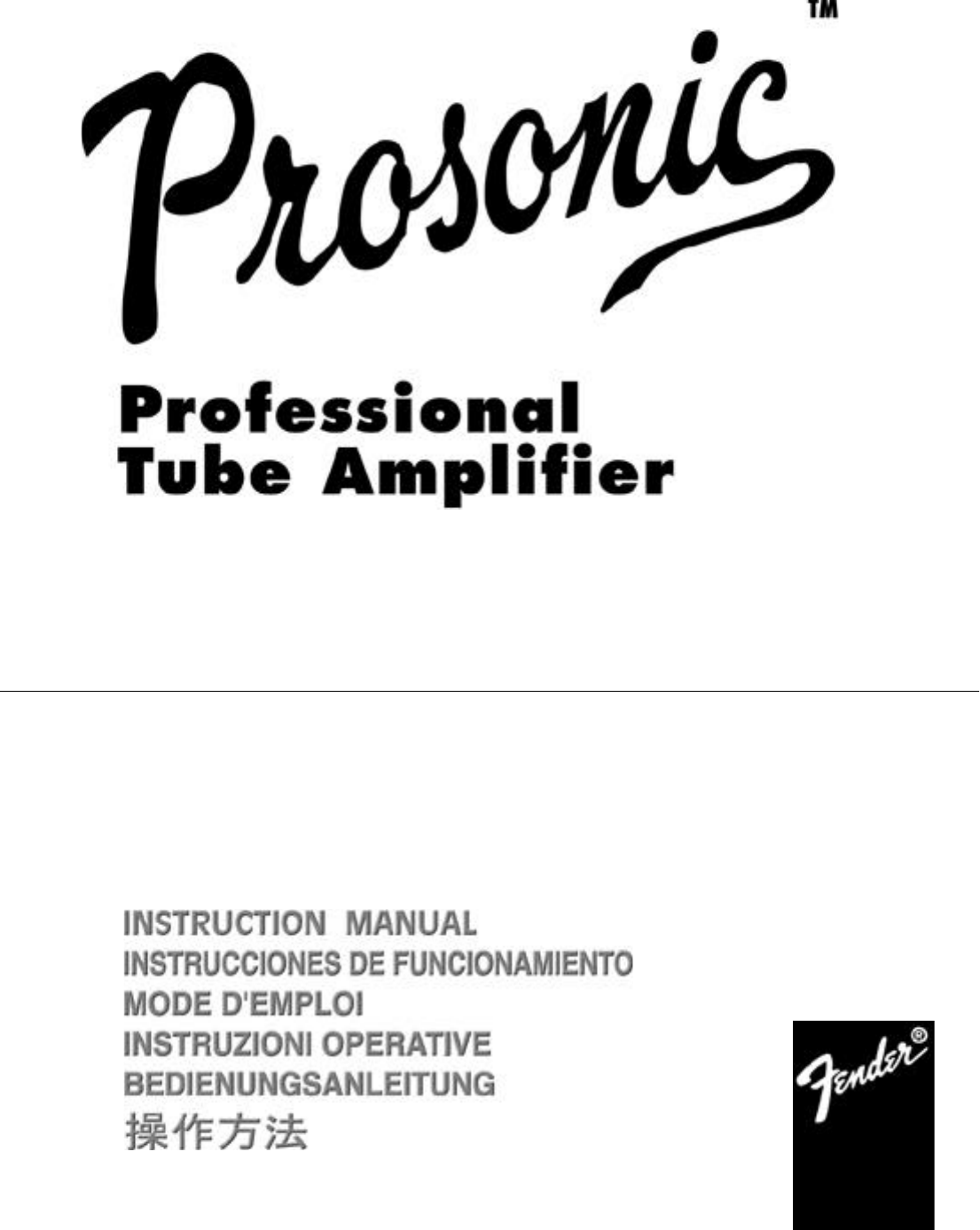 User Manual: Fender Prosonic_manual Fender® Guitar Amplifier Owner's Manuals (Archived) – Fender