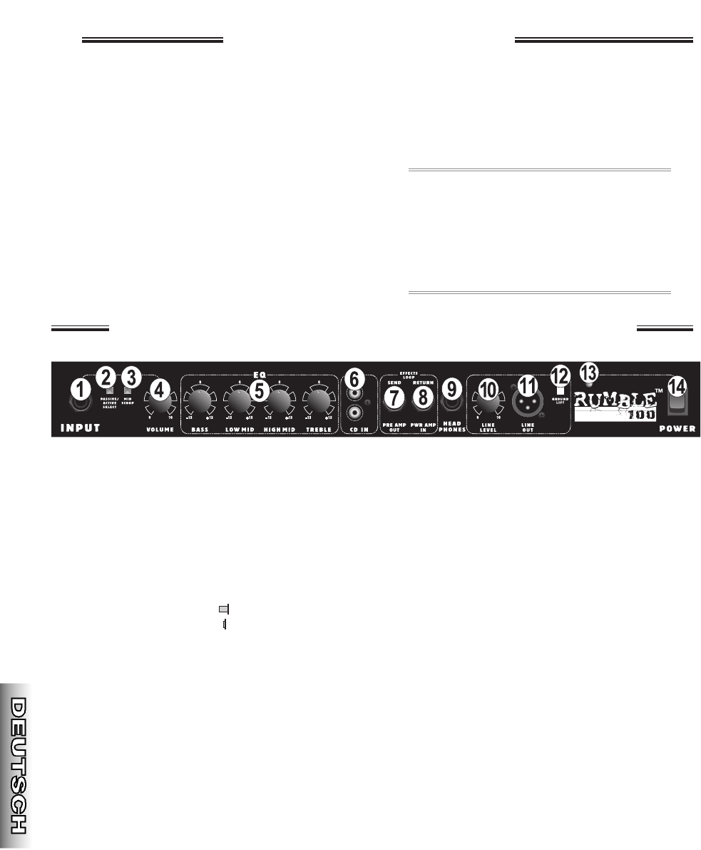 EFFECTS LOOP AUSGANGSIMPEDANZ: 1 kΩ