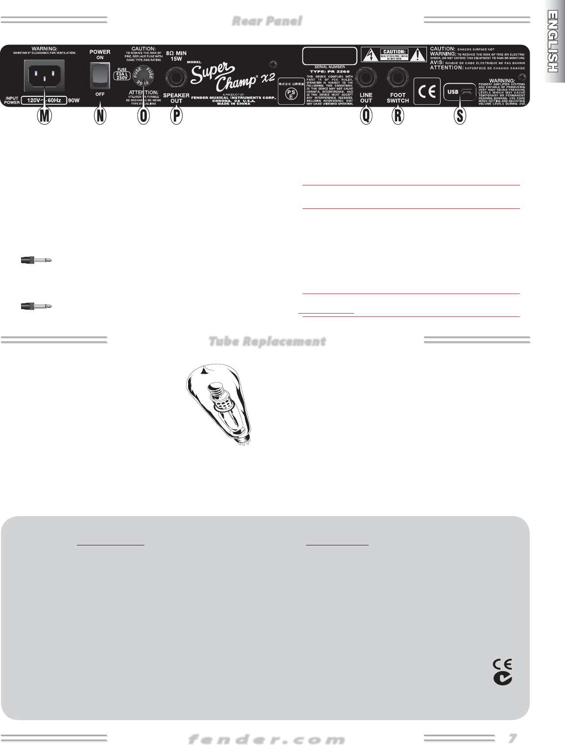 Fender®, Champ®, Bassman®, Twin-Amp™, Princeton®, Deluxe™, Super-Sonic™, Blackface™ and JazzMaster™ are trademarks of FMIC.