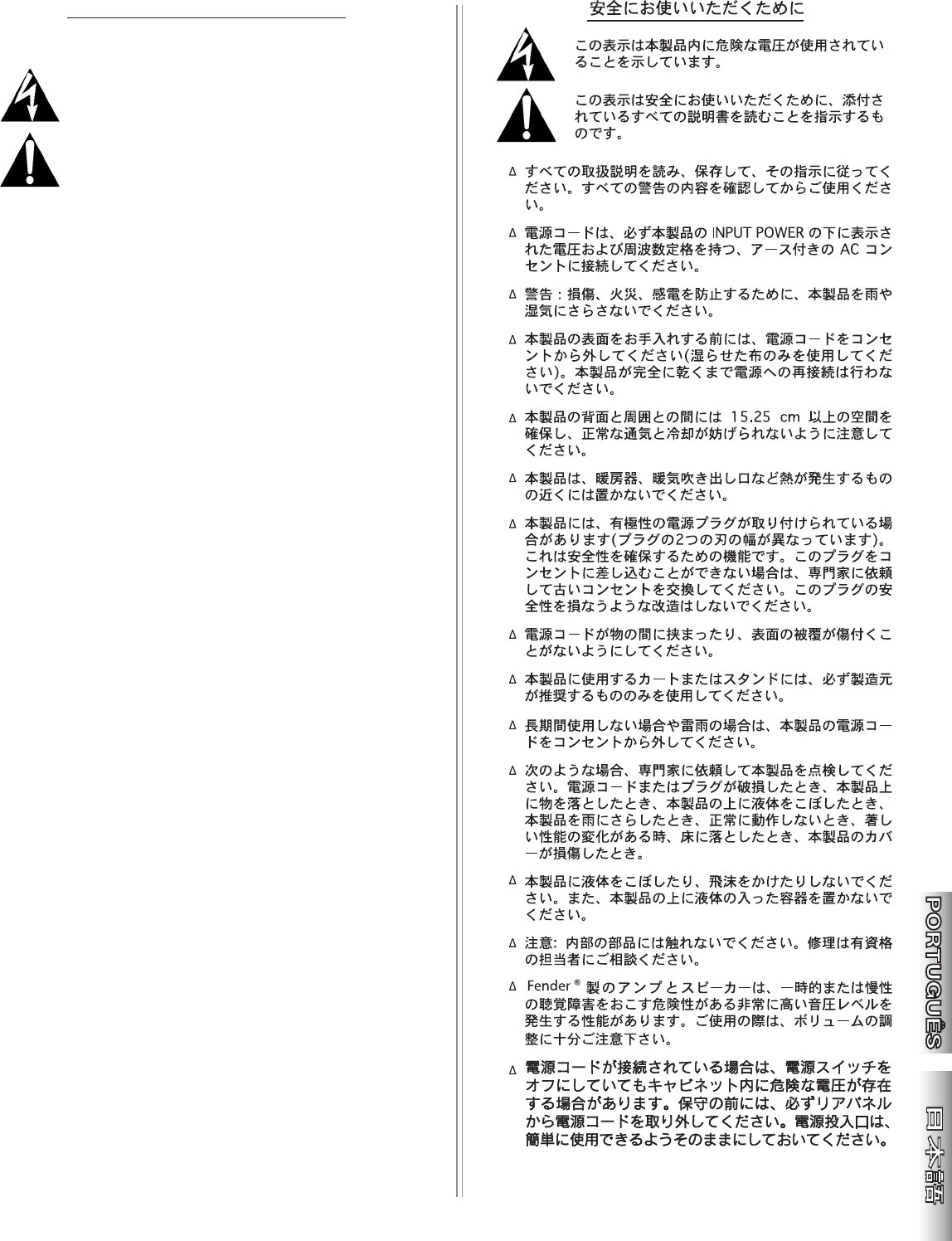 ∆ Fender® amplifiers and loudspeaker systems are capable of producing very high sound